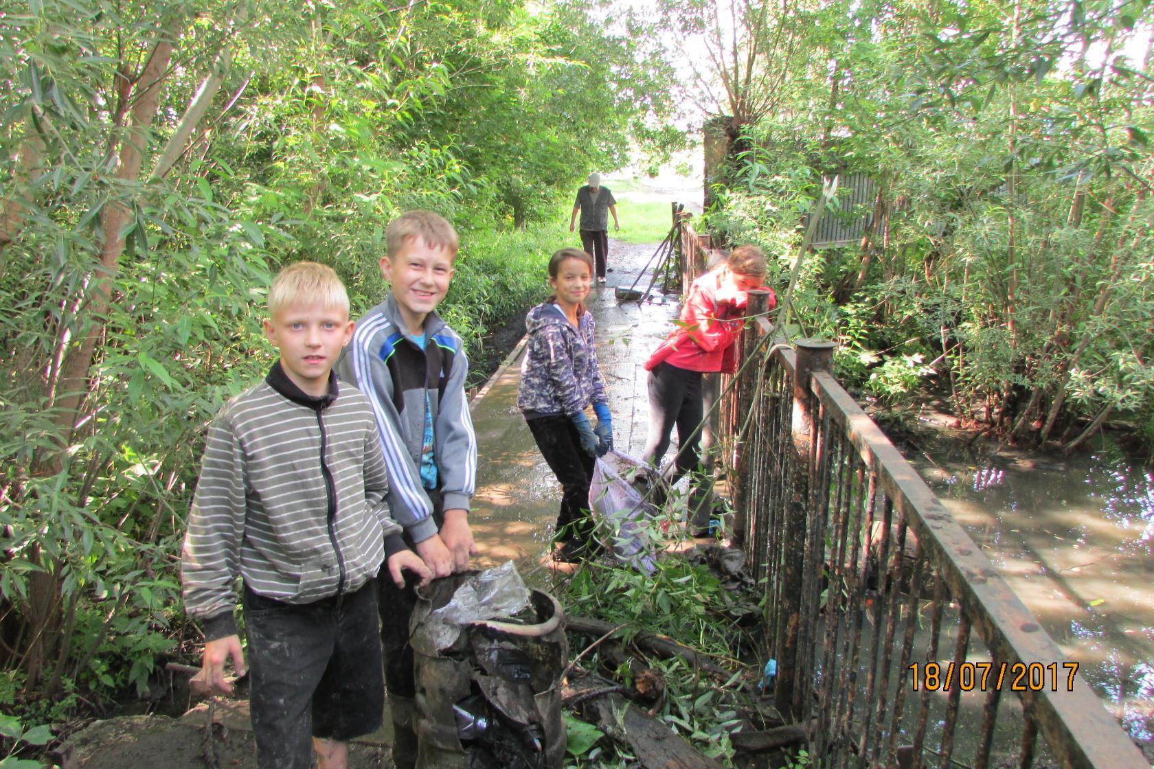 Летом ребята 4 А класса под руководством родителей организовали очистку ручья в Кировском районе между улицей Красноярской и Тургенева. Ребята заметили, что ручей, в котором живут дикие уточки, загрязнен мусором: консервные и стеклянные банки, пластиковые бутылки, бумага, бытовой мусор. Много дней и сил понадобилось ребятам, чтобы очистить ручей. Родители договорились с территориальным управлением Кировского района администрации г. Кемерово и весь мусор вывезли на машинах. Осенью, в свободное от уроков время, мы поддерживали чистоту ручья и не забывали подкармливать уточек.